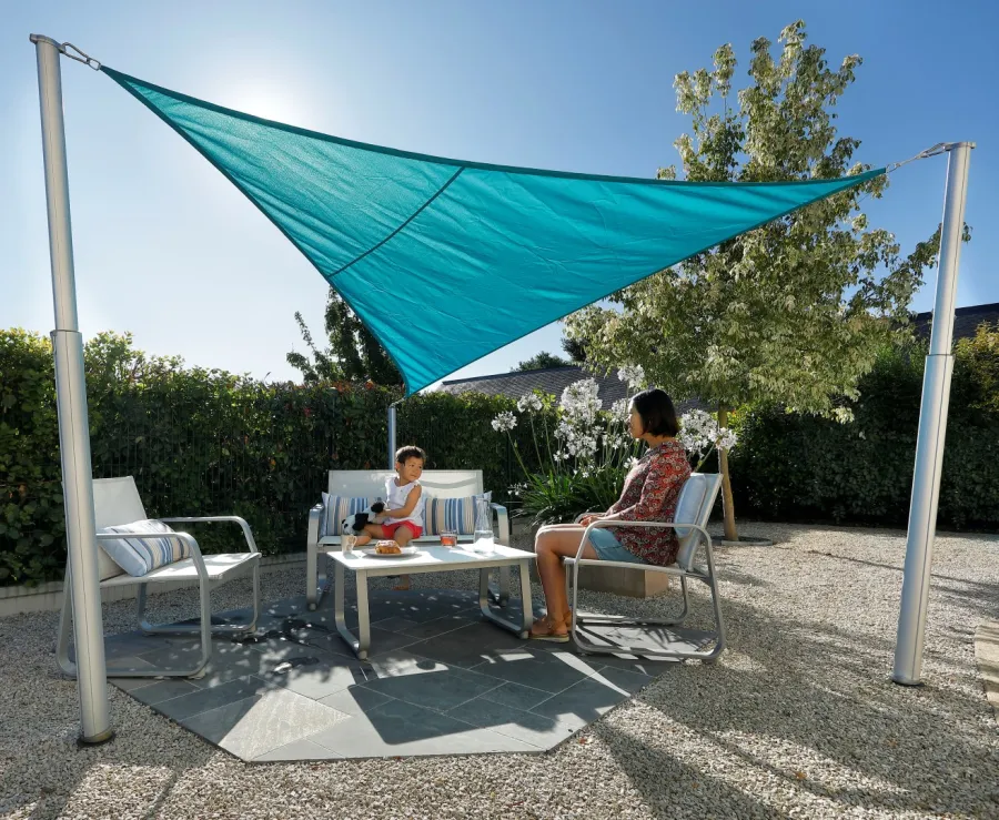 Grazie a questo sistema di ancoraggio al suolo che facilita l'organizzazione del vostro spazio esterno, potrete godervi tutto il vostro terreno e non solo la vostra terrazza, spesso fonte di calore. Da ora in poi, potrete scegliere tra un luogo più fresco o più caldo, a seconda delle condizioni climatiche del momento, o sistemarvi nella calma del vostro giardino contemplando la vostra casa.