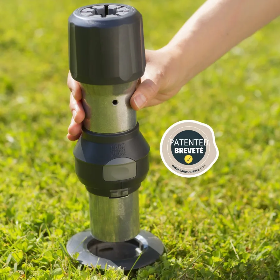 Il concetto è semplice, si tratta di una base di ancoraggio da avvitare o incassare nel vostro terreno: in seguito si potrà adattare un gran numero di attrezzature secondo le vostre necessità e desideri.