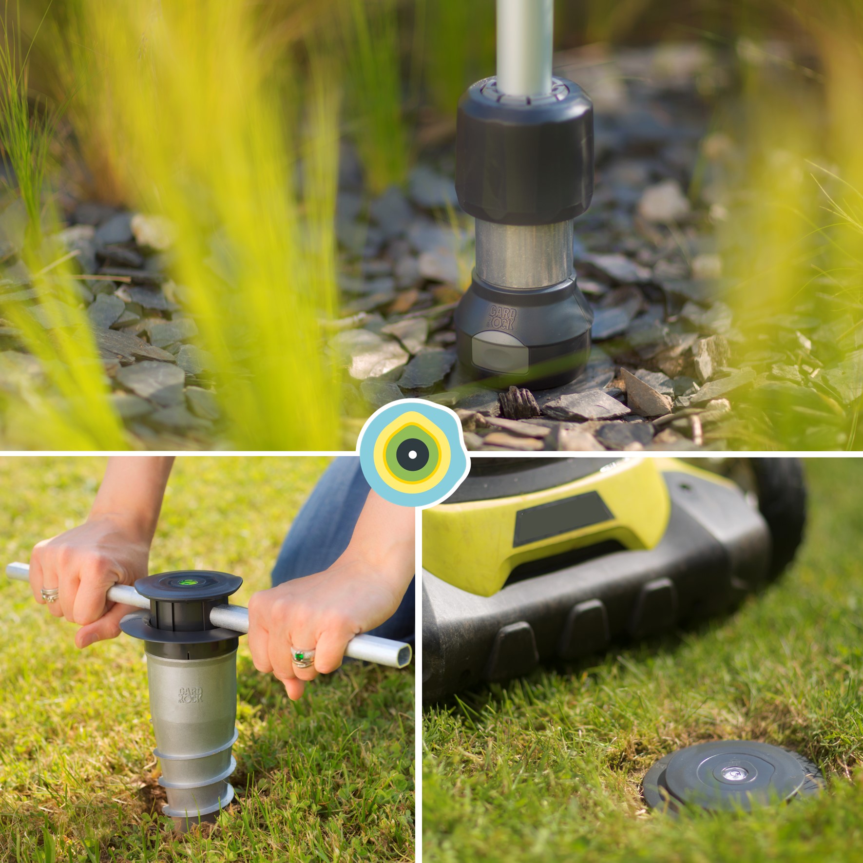 La base di fissaggio Gard&Rock permette un ancoraggio al terreno solido e rimovibile delle vostre attrezzature all'aperto (ombrelloni, pergole, bandiere, casette per uccellini, attrezzature sportive,...). Semplicemente agganciandolo alla sua base di ancoraggio (venduta separatamente), potrete modulare o liberare spazio in un istante, per godervi al meglio il vostro giardino!
