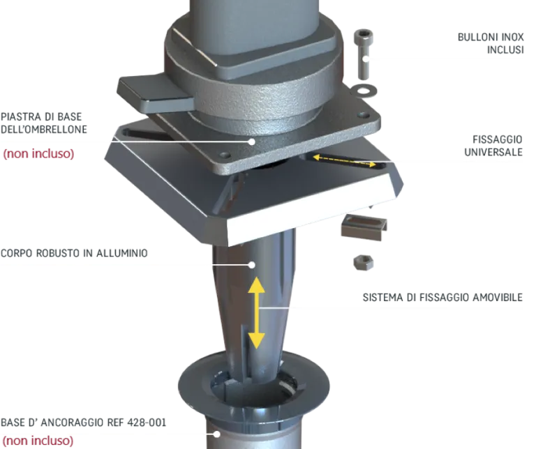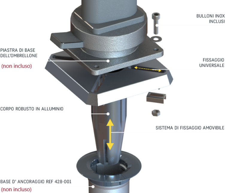 ☛ IL NOSTRO CONSIGLIO: In caso il terreno non sia abbastanza stabile e per gli ombrelloni più grandi, si consiglia di sigillare la base di ancoraggio. La procedura è indicata nelle istruzioni e ti invitiamo a guardare questo video: