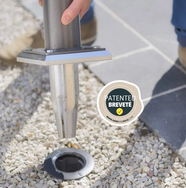Facente parte del concept esclusivo di Gard&Rock, la base per ombrellone inclinato dovrà essere obbligatoriamente associata alla base di ancoraggio (Rif. 428-001 da ordinare a parte). Questo sistema offre un fissaggio solido, rimovibile e permette di alternare o di spostare la vostra attrezzatura per meglio godere del proprio giardino.