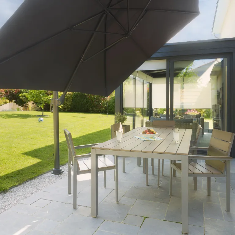 Questa base di ancoraggio potrà essere avvitata o sigillata in tutti i tipi di terreno piano e in pendenza! (stabilizzato, ghiaia, terra, prato, cemento,...). E per un beneficio ottimale, raccomandiamo di posizionarne diverse, al fine di non essere limitati ad un solo posto. Potrete così creare uno spazio d'ombra in fondo al vostro giardino per contemplare la vostra casa, per sistemarvi in una zona più areata o per riposare vicino alla vegetazione.