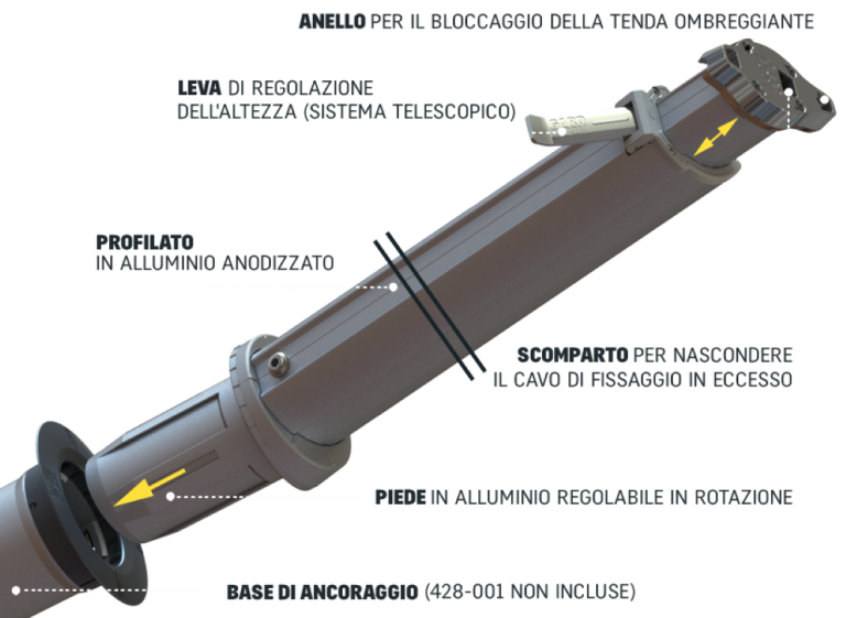 I pali GARD&ROCK consentono il fissaggio semplice e rapido delle tende ombreggianti ovunque nel vostro spazio esterno (terrazza, prato, veranda, piscina…). Il nostro sistema brevettato offre un ancoraggio amovibile per sistemare e liberare lo spazio in un attimo. Con l'aiuto di un palo telescopico potrete regolarne l'altezza secondo le vostre esigenze. Potrete beneficiare di un prodotto di alta qualità, design e robustezza di stampo francese.