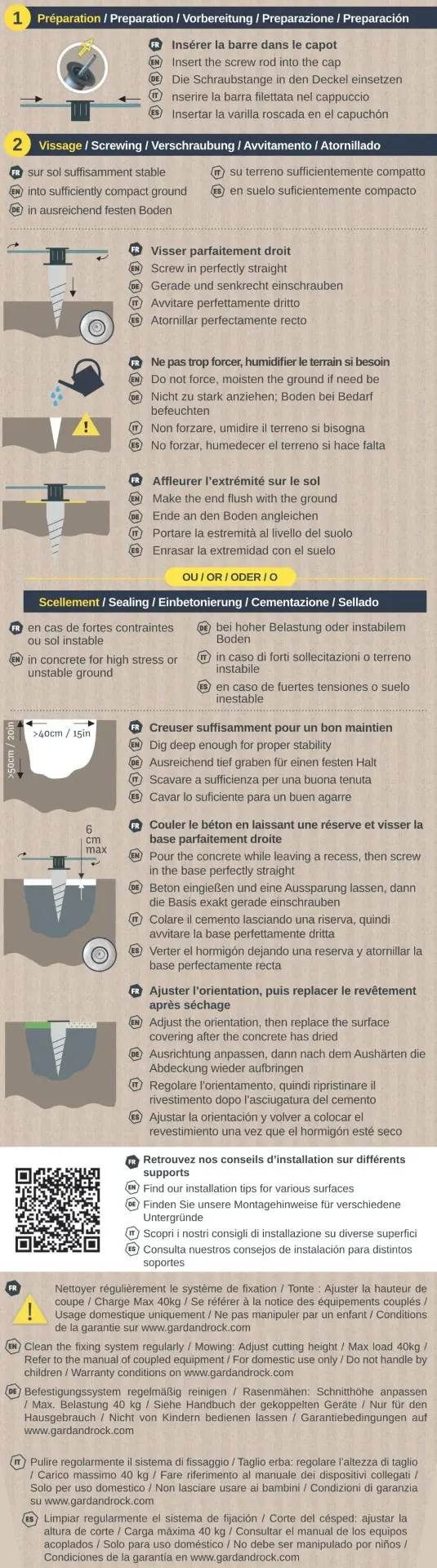 La garanzia non si applica in caso di rottura dovuta a un avvitamento eccessivo. È quindi importante inumidire e/o preparare bene il terreno per facilitare l'avvitamento.