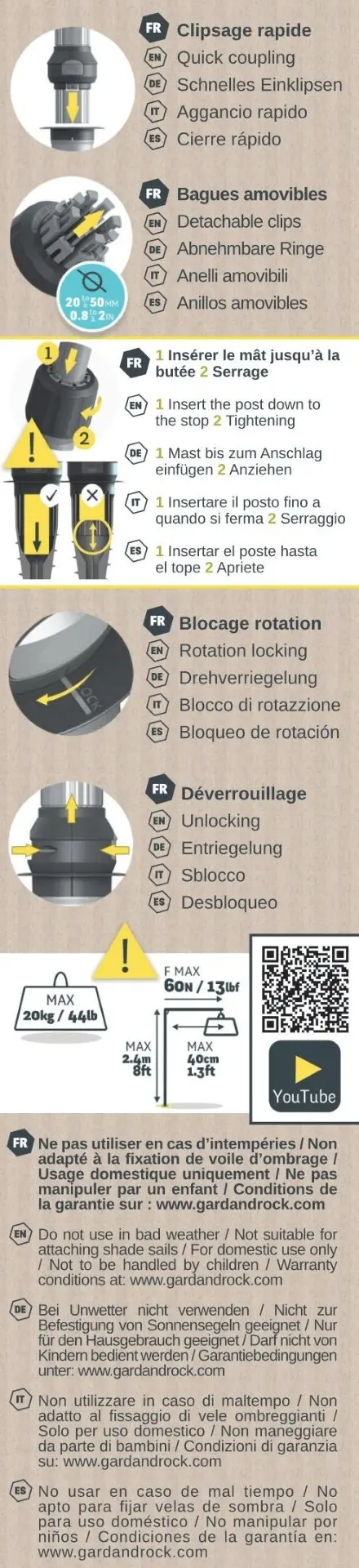 La garanzia non è valida in caso di smontaggio dei prodotti da parte di persone diverse da GARD &ROCK.