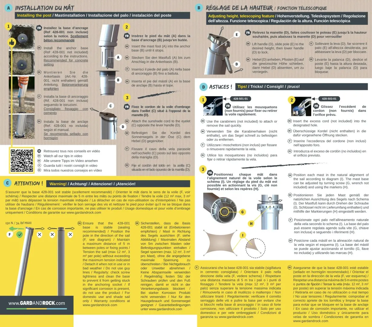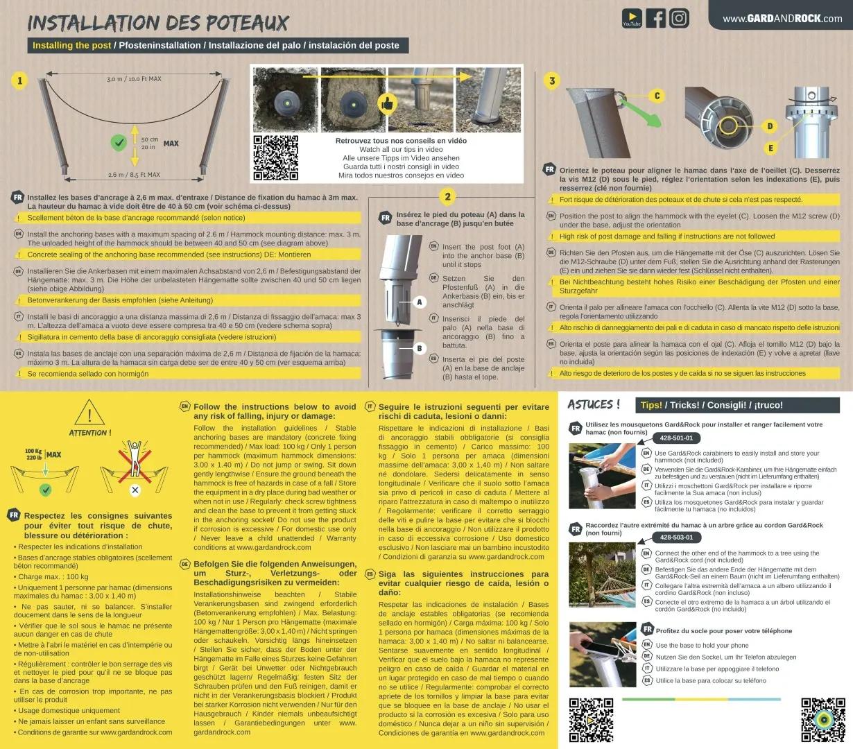 GARD & ROCK garantisce la sostituzione o la fornitura di parti riconosciute come difettose con esclusione di tutti i danni, i costi di manodopera, di viaggio e di trasporto.